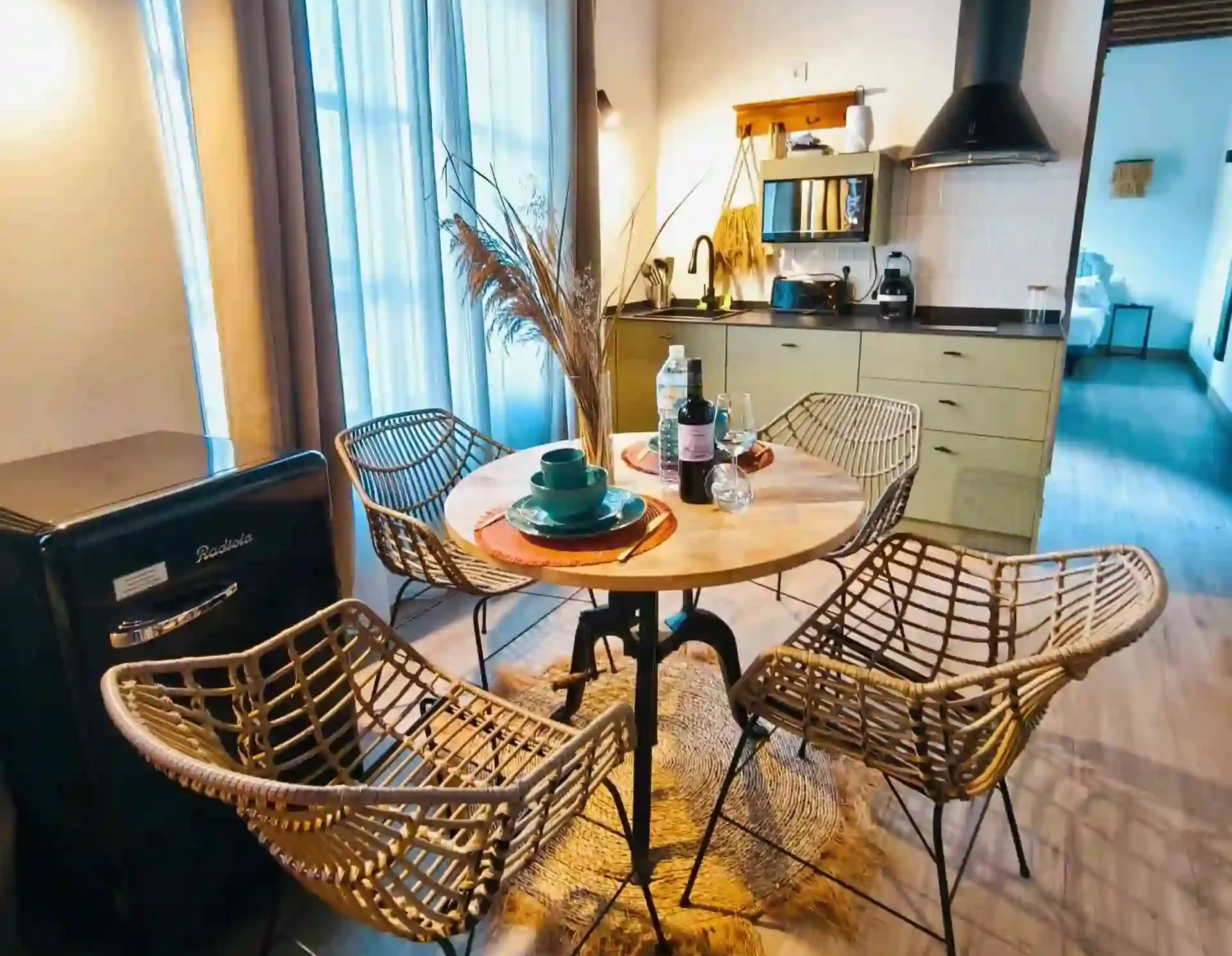 La cocina totalmente equipada te brinda la libertad de preparar tus propias comidas con ingredientes frescos de los mercados locales, permitiéndote disfrutar de la deliciosa gastronomía de la región en la comodidad de tu propio apartamento.